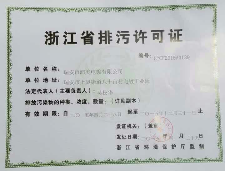 潤(rùn)美電鍍排污許可證