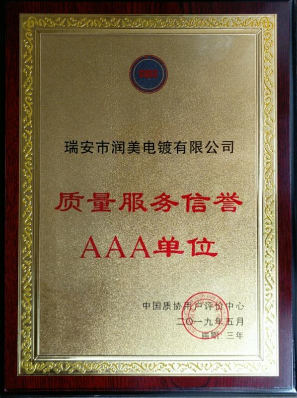 質(zhì)量服務(wù)信譽(yù)AAA單位證書